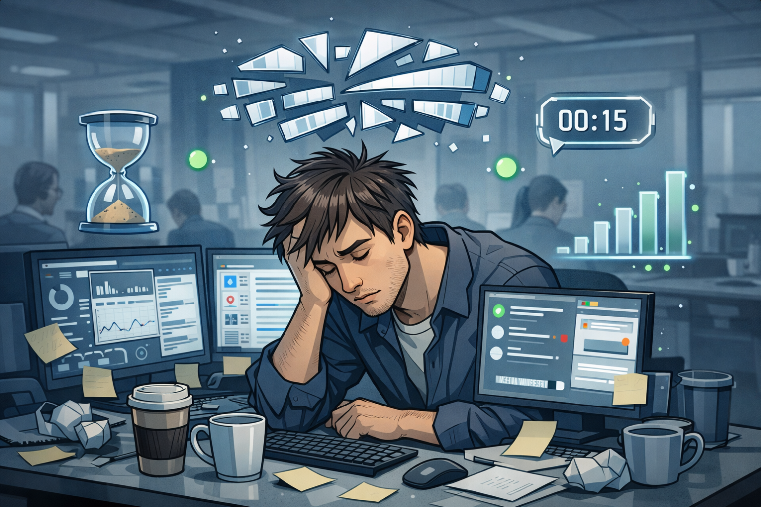 传统分工,你手动操作:查资料、比方案、写总结。注意力被榨,DAU成KPI王。