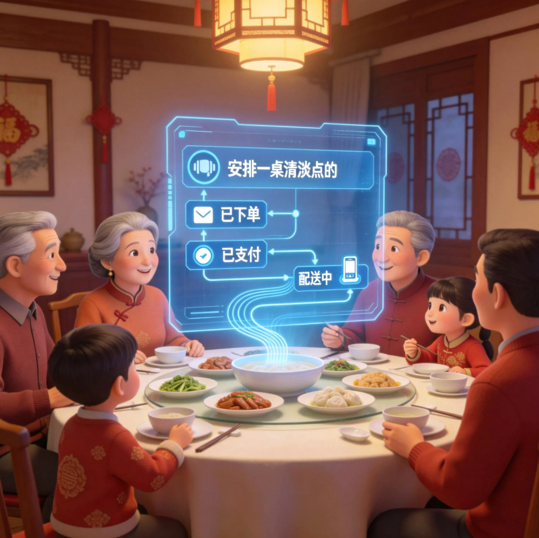 先说路线A,我给它起名叫**“落地链路”。春节最常见的场景:家里来客、临时加菜、还要兼顾老人忌口。你一句“帮我安排一桌清淡点的”,它不只是回你一段建议,而是顺着你的地址、时间、预算,把能下单的给你下了,把能付款的给你付了,把能送到的给你送到。你看到的不是“回答”,而是“结果”。这类应用的核心竞争力,不在于多会聊天,而在于能不能把每一个环节接上:信息确认、授权、支付、履约、售后兜底。“真正的智能,不是把话说漂亮,而是把最后一步走完。”** 春节会把它的优势放大:一是需求密集、频次高,你每天都在用;二是授权一旦建立,习惯就会像年夜饭的座位一样固定下来;三是入口和生态协同越顺,越容易形成“下次还找它”的惰性。“高频会养成手感,手感会变成依赖。”